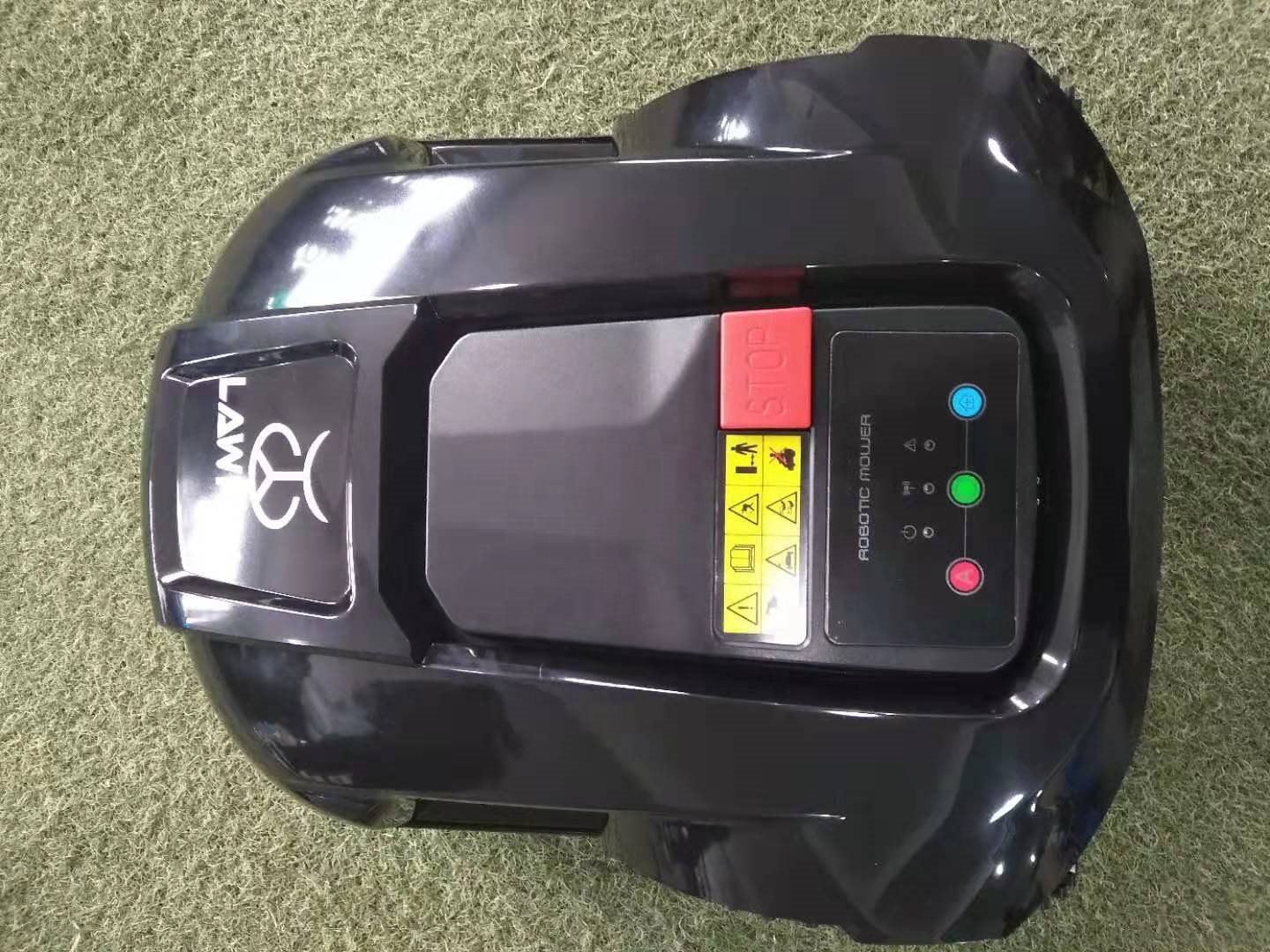 - Safety – This Robot Lawn Mower has bump sensors that stop the mower and turn it around when it hits an unexpected obstacle. If the unit is lifted during operation it will stop travel and the cutting blades. It also has a large easily accessed Emergency Stop button on top to manually stop the mower when needed.